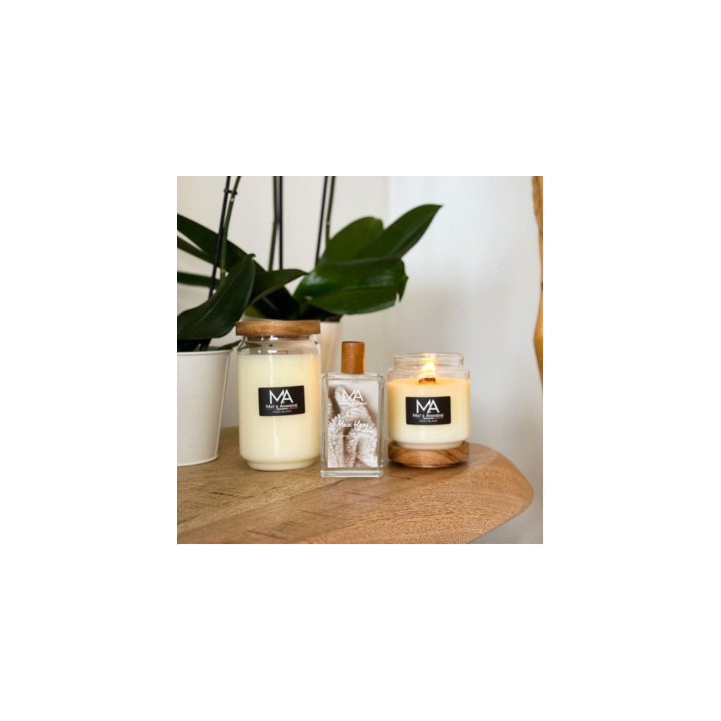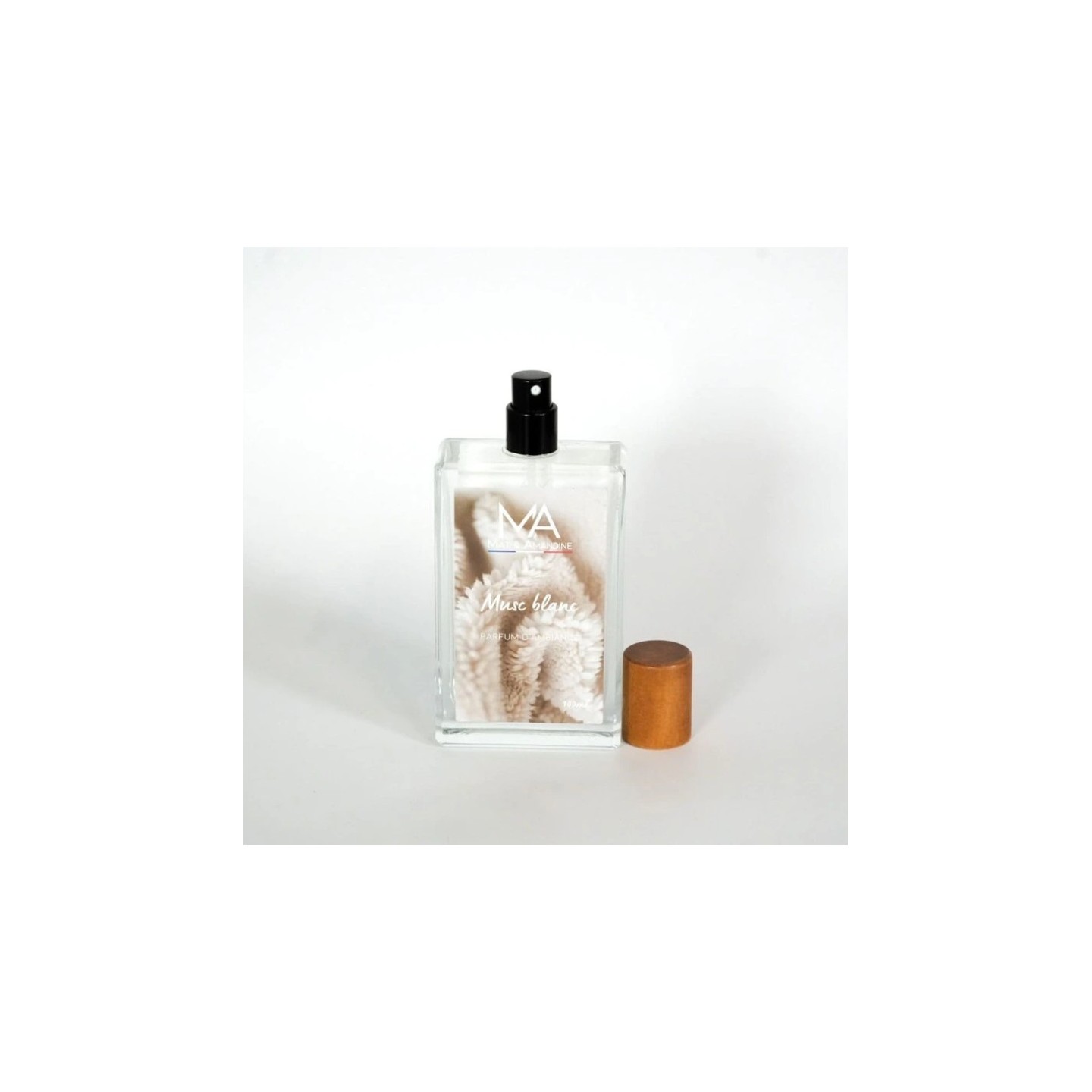 Le parfum d'ambiance Musc Blanc de Mat & Amandine diffuse un parfum pur et délicat, mêlant la finesse du musc blanc à des notes légèrement poudrées.