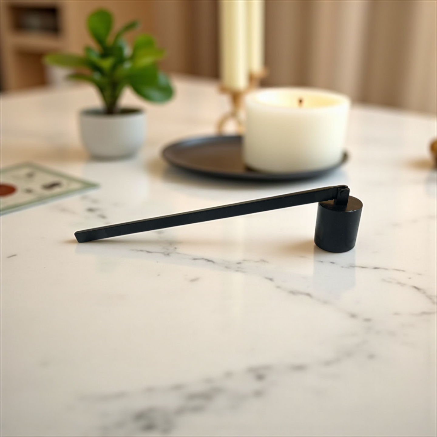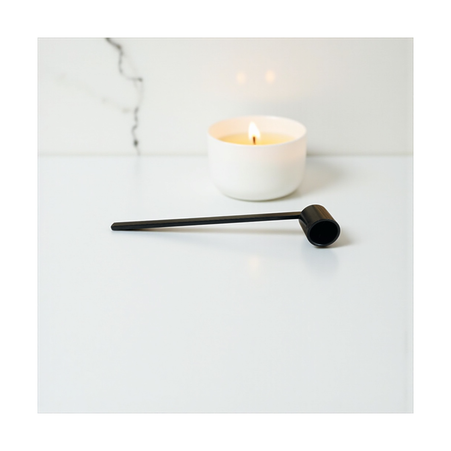 Un éteignoir noir en acier inoxydable, élégant et pratique pour éteindre vos bougies sans fumée ni résidus.
