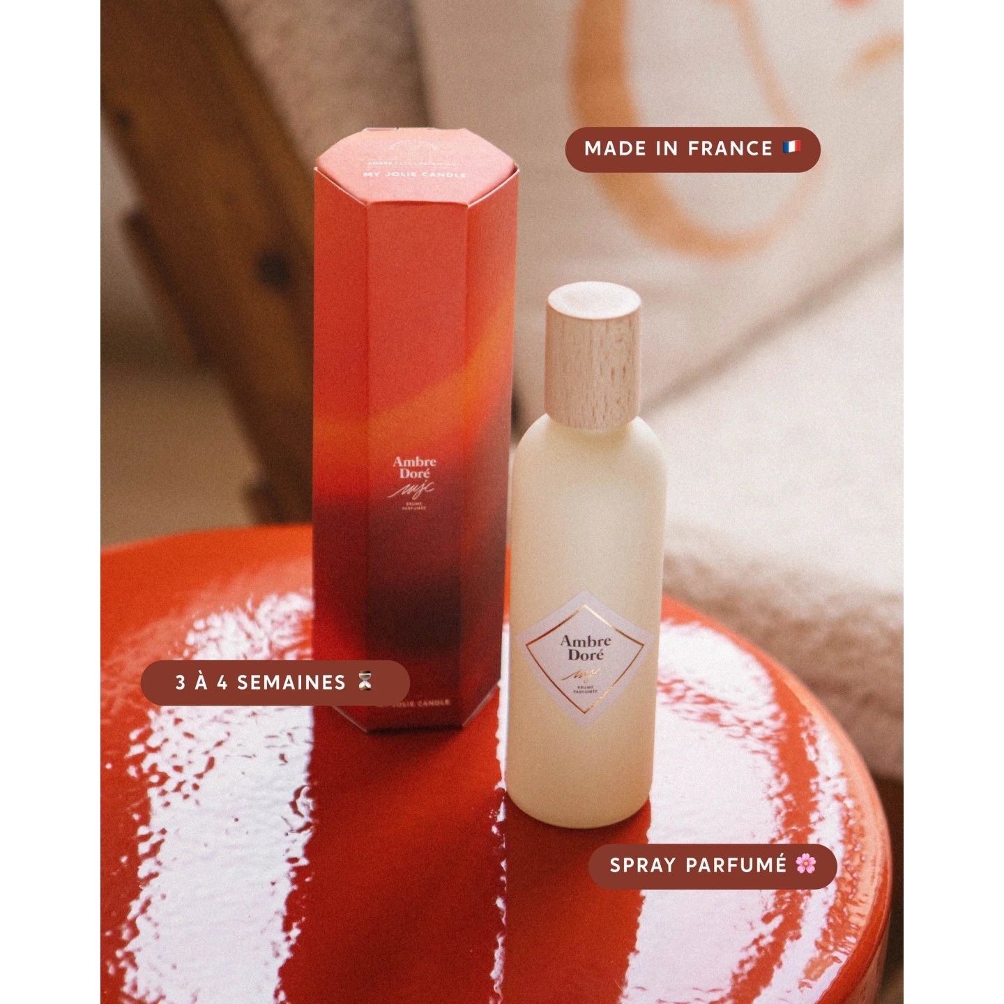 Il suffit d’un pschitt pour que notre spray parfumé Ambre Doré diffuse instantanément un parfum durable. Voyagez sans quitter votre salon à travers un parfum raffiné. Profitez jusqu’à 4 semaines de bonheur parfumé.