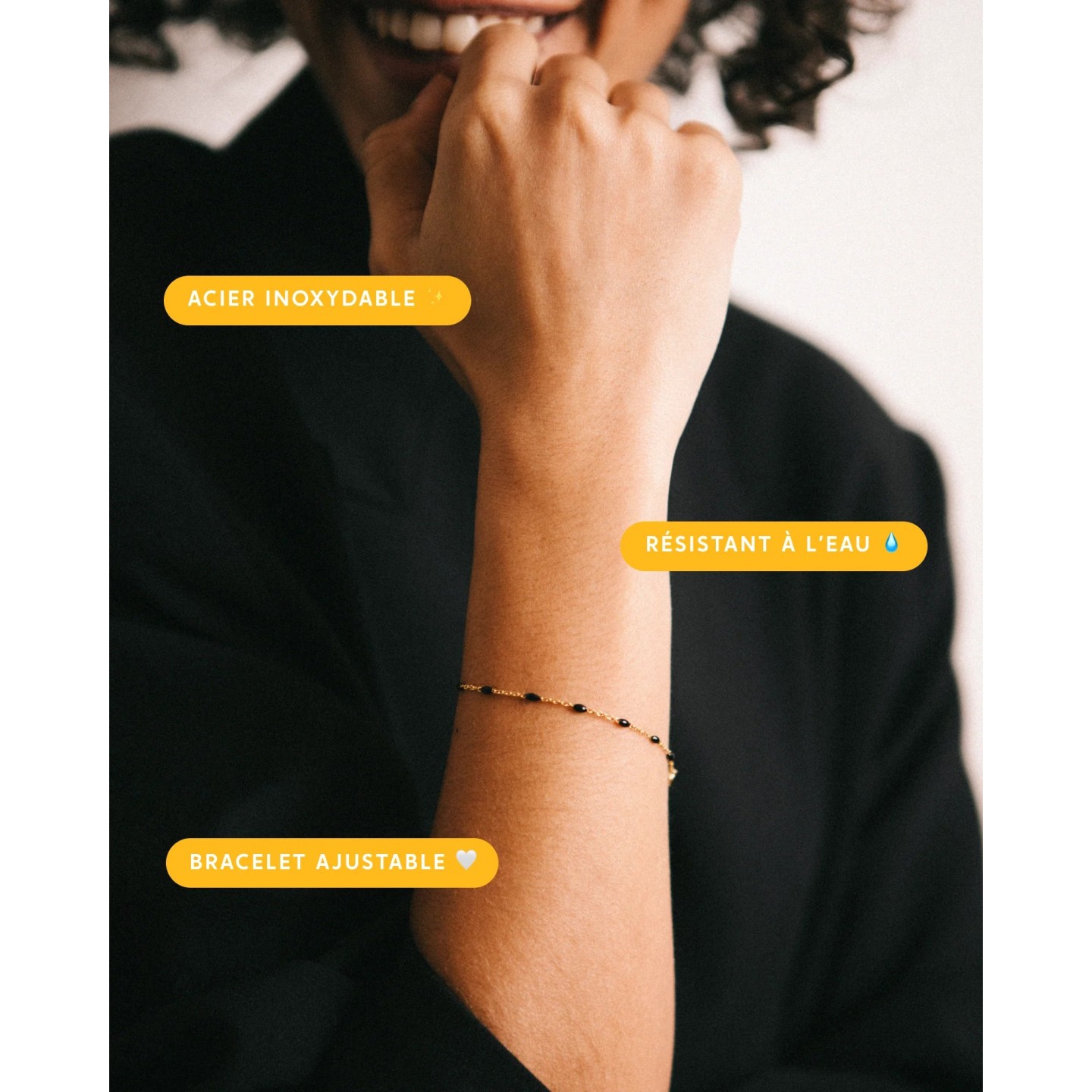 • Bracelet en acier inoxydable doré à l’or fin 18 carats et perles en epoxy