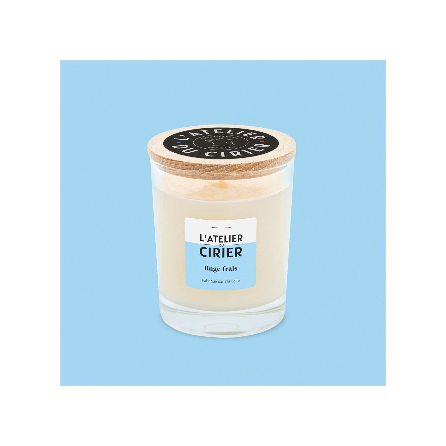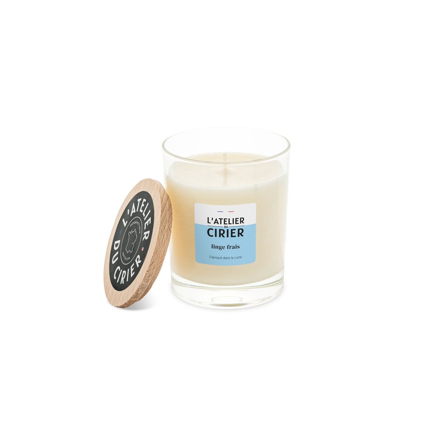Les bougies 175g ont un couvercle en bois et une étiquette colorée : un mariage indémodable pour une gamme intemporelle et authentique.