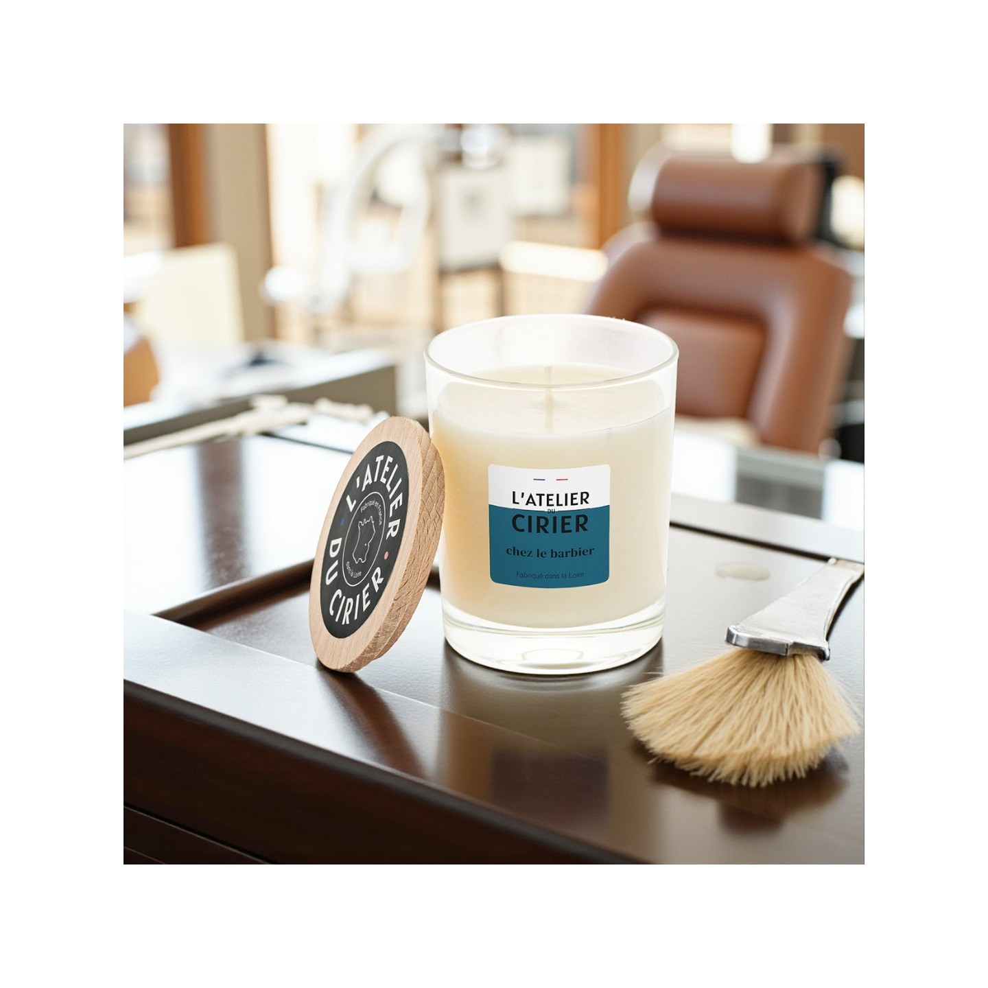 La bougie Chez le Barbier de L’Atelier du Cirier évoque l’atmosphère feutrée d’un salon de barbier traditionnel, entre effluves de savon frais, cuir patiné et bois noble. Son parfum subtil mêle des notes aromatiques et musquées pour une ambiance à la fois élégante, réconfortante et virile. Parfaite pour apporter une touche de caractère à votre intérieur, elle reflète le savoir-faire artisanal et la qualité reconnue de la marque.