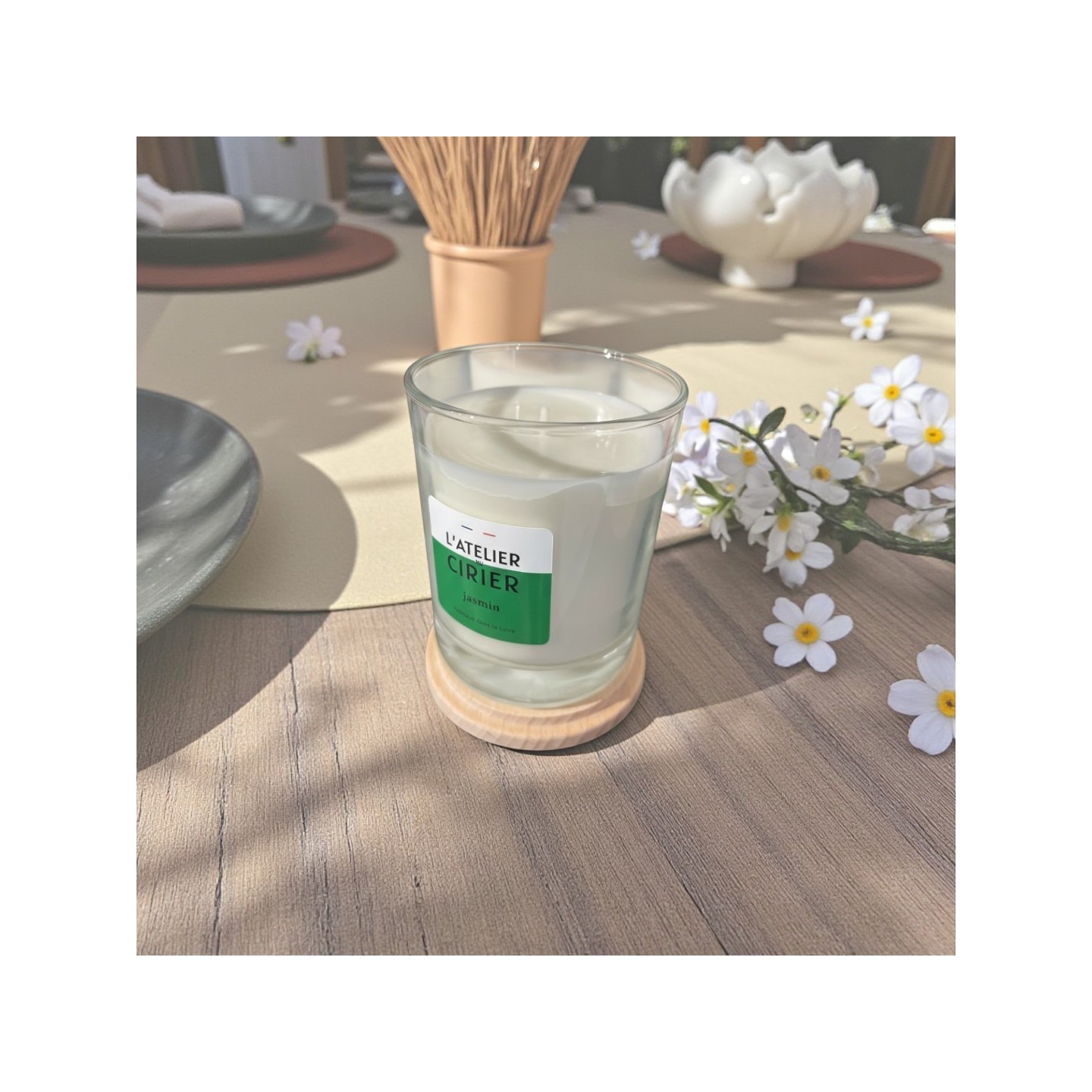La bougie Jasmin de L’Atelier du Cirier diffuse une fragrance raffinée et captivante, fidèle à la fleur emblématique de la parfumerie. Ses notes blanches, suaves et légèrement poudrées créent une ambiance à la fois apaisante et voluptueuse, idéale pour instaurer une atmosphère de détente et de bien-être. Élégante et intemporelle, elle s’intègre parfaitement dans tous les intérieurs et reflète le savoir-faire artisanal de la marque.