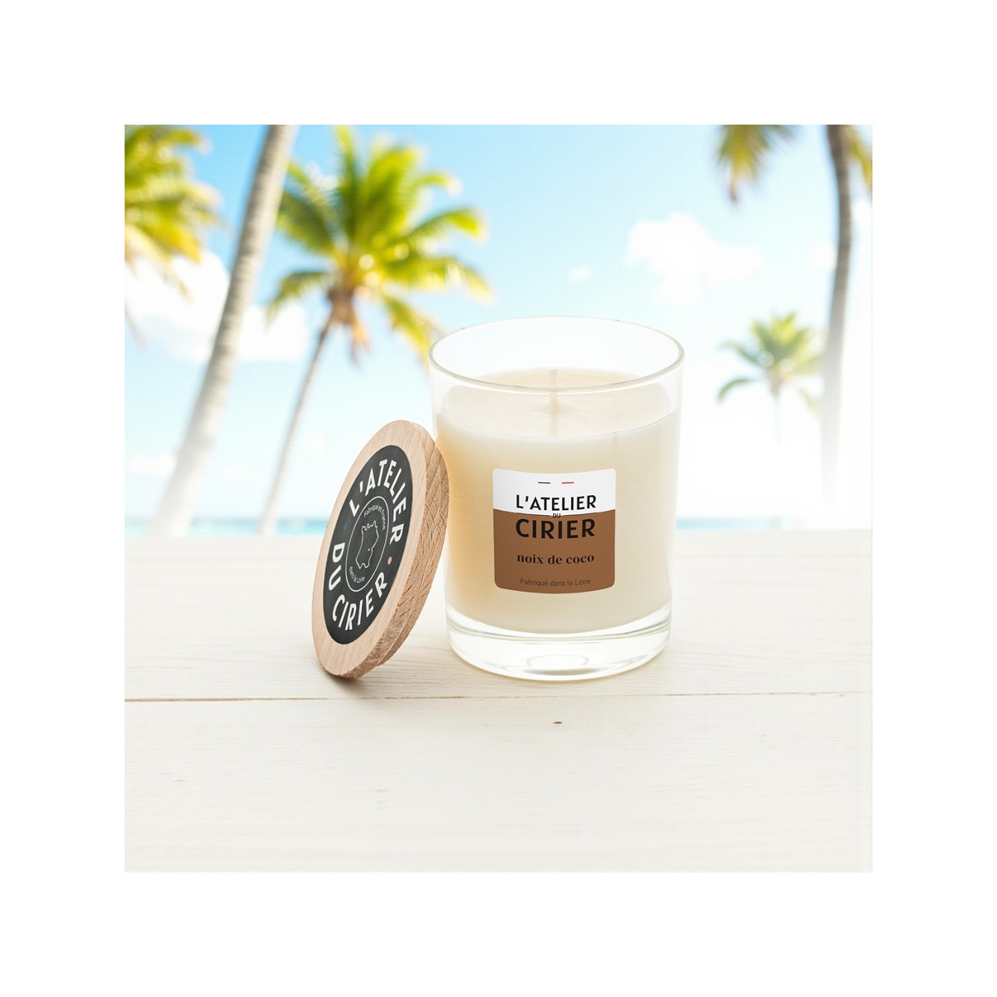 La bougie Noix de Coco de L’Atelier du Cirier diffuse un parfum gourmand et enveloppant, mêlant la douceur lactée de la noix de coco à une touche subtilement exotique. Sa fragrance chaleureuse crée une atmosphère relaxante et estivale, idéale pour faire voyager vos sens tout en apportant confort et sérénité à votre intérieur. Fabriquée artisanalement dans la Loire, elle allie savoir-faire, qualité et authenticité.