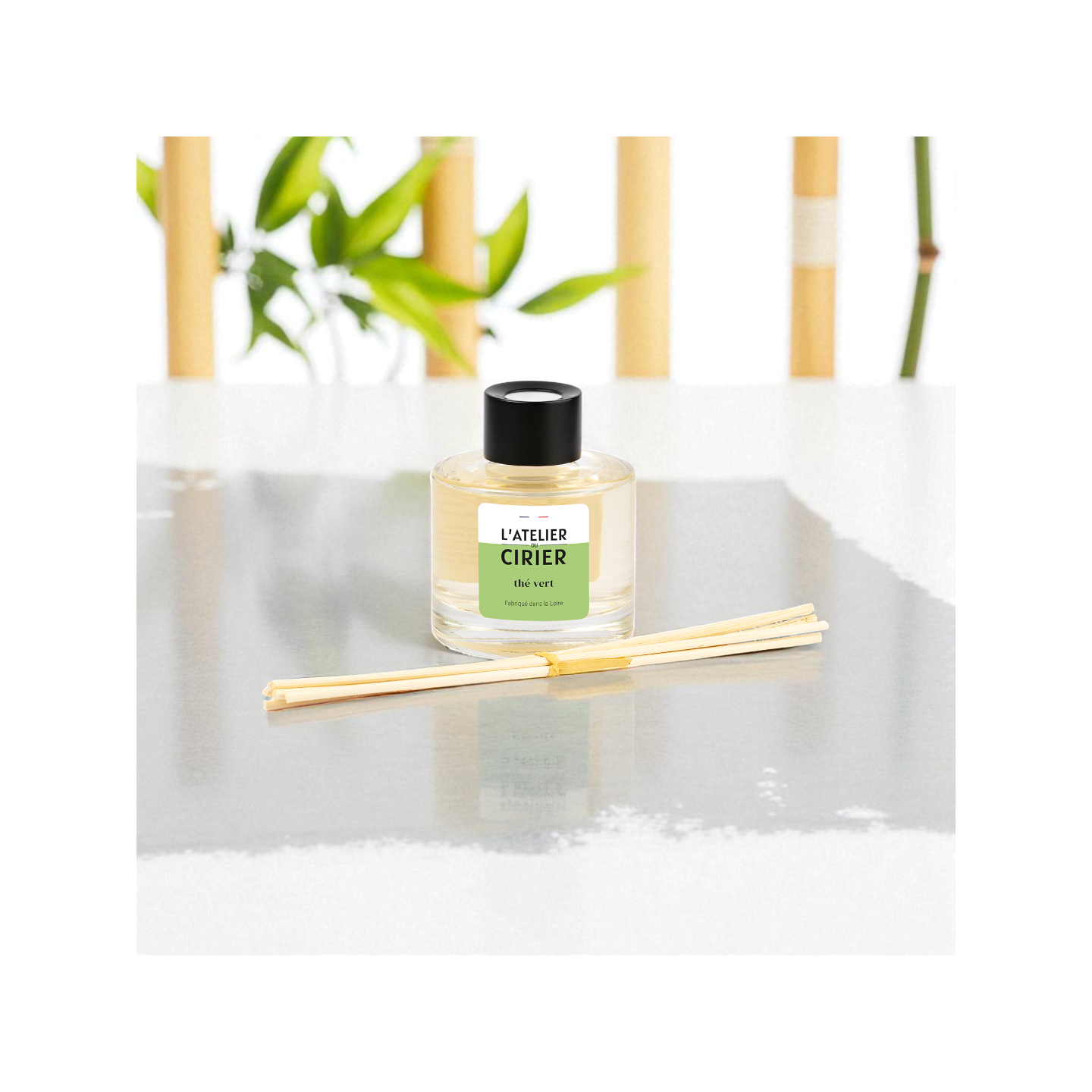 Le diffuseur à bâtons “Thé vert” libère progressivement une senteur fraîche, douce et apaisante de thé vert, créant une atmosphère zen et raffinée dans votre intérieur.